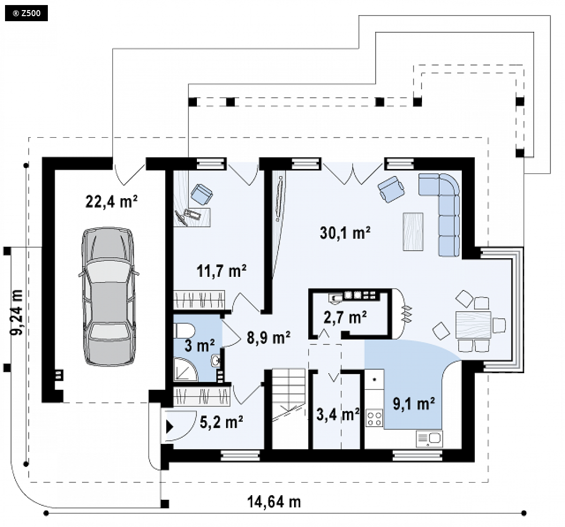144 m2 · Parterowe · Projekty